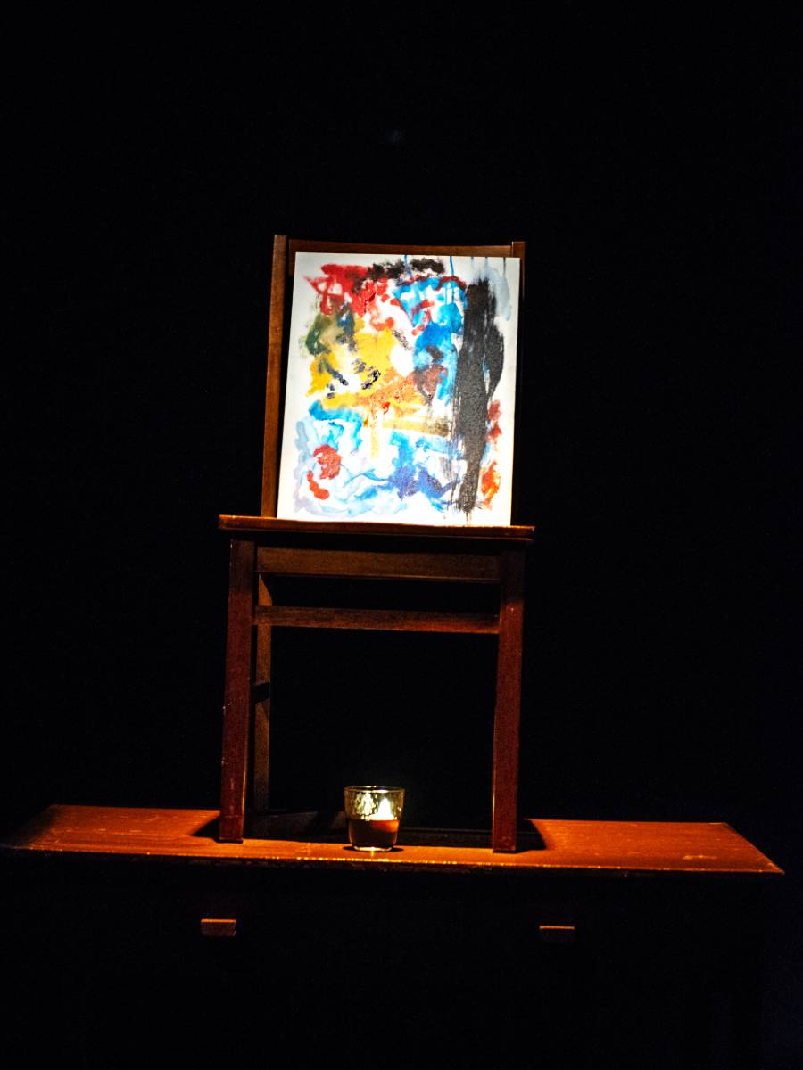 - Production image from The Unfettered Hour featuring an original painting by Tang Shu-wing. PC: Tang Shu-wing