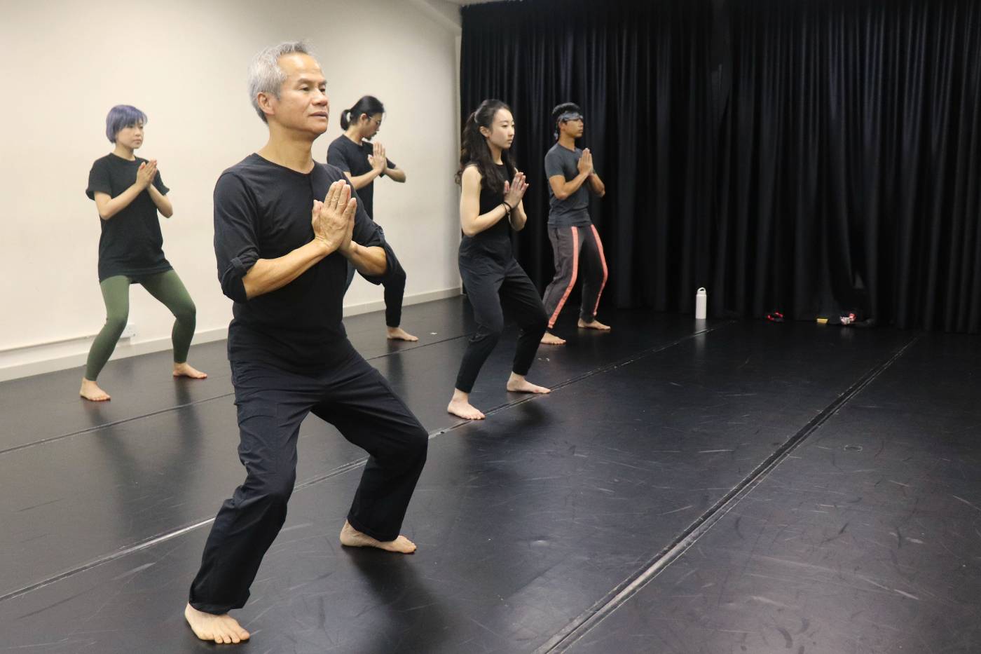 - Director Tang Shu-wing leads the cast of Bhagavad Gita in an exercise. PC: Tang Shu-wing Theatre Studio