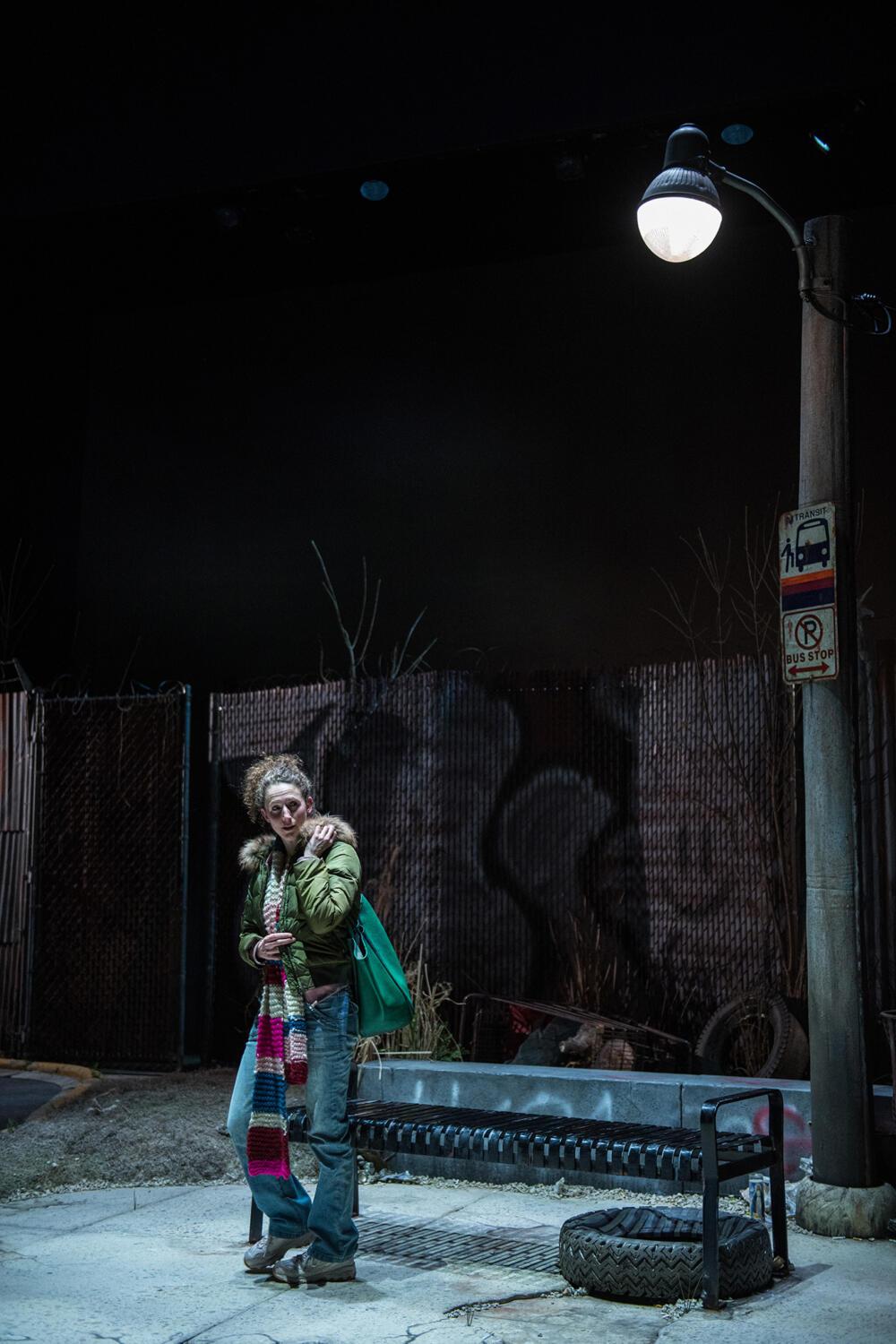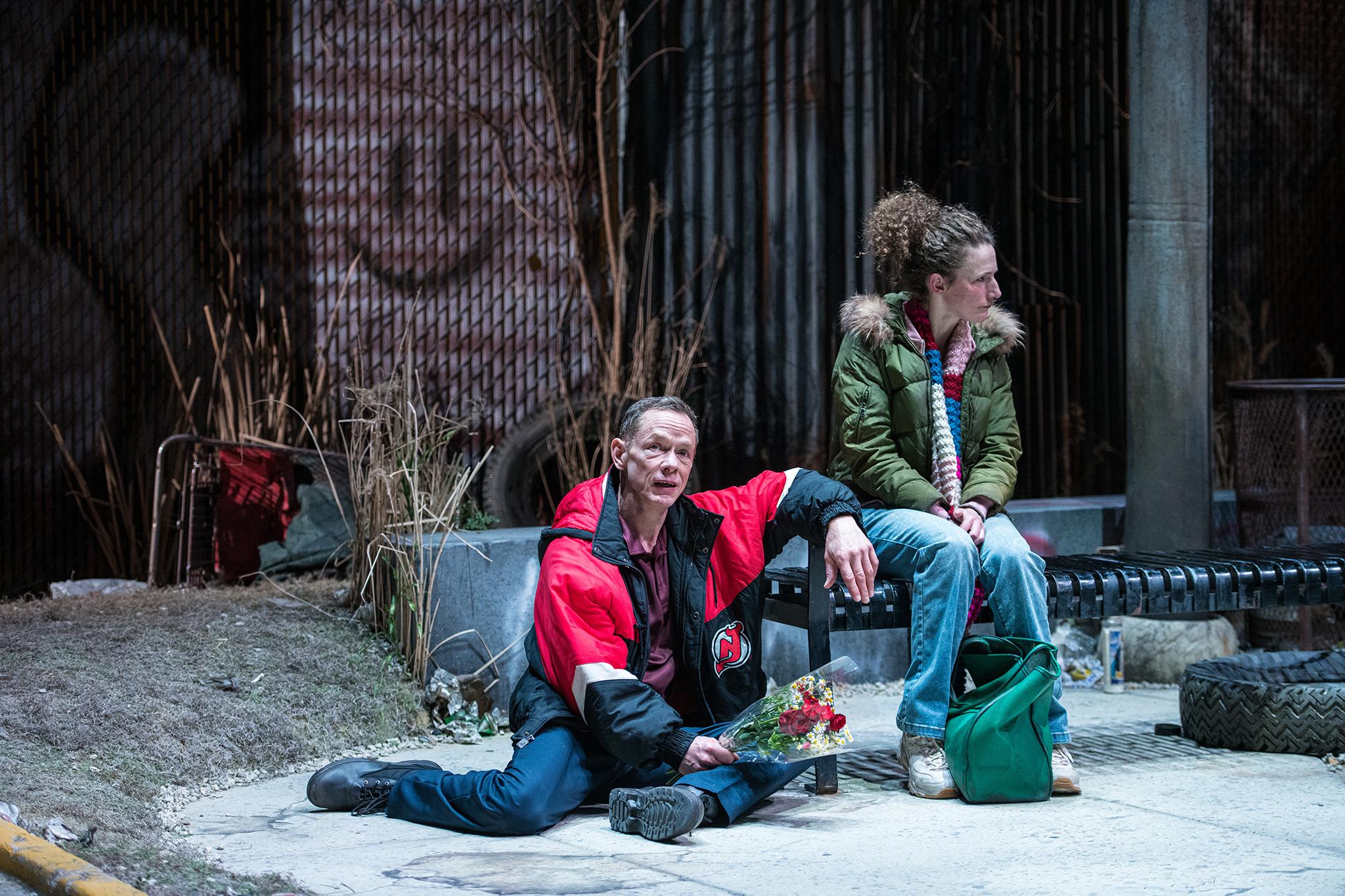 Oscillating between rather grim moments of characters who have lost their way and almost disconcerting lighthearted dialogue, Ironbound brings onto the stage a stylized version of a “starting all over again” story, with its positives and downfalls. This simplification, albeit useful in theatrical settings, where suggestion has to replace exact representation due to several concerns (time, financial etc.), is also evident in the construction of the characters, written as complexified stereotypes. Contrasting with the beautifully hyperrealist set design (Lisa Schlenker), where the town’s ruin is reflected in the crumbling curb and even in the pebbles sitting at the bottom of potholes, the architecture of the people whose lives are presented on stage seems to only be marking elements of who they are and what they want from the “new world”, and not allow for a more in-depth expansion of the great acting potential.