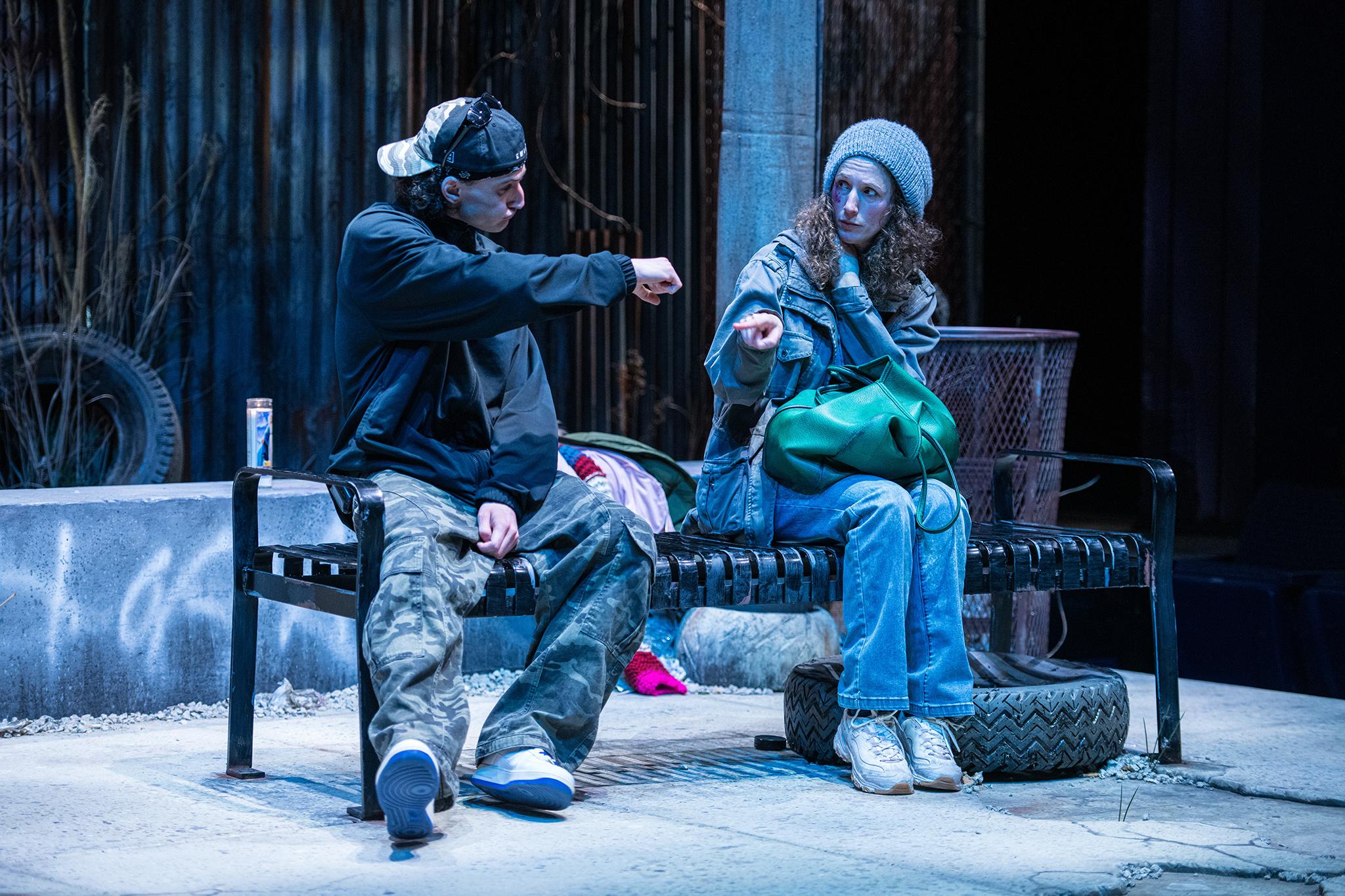 Tommy (Jonathan Wainwright) and Darja (Cassandra Bissell) in Ironbound. Photo credits: Ross Zentner.