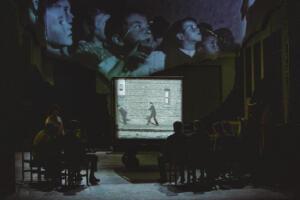 The clearest influence in Alarcón’s staging is Complicité, perhaps most concretely The Street of Crocodiles. The central design concept evokes a classroom, but the strength of Chaves’s set is that it is easily reconfigured to serve as a makeshift theatre, cinema and lecture hall. All are spaces for encounters and community, for learning and discussion. There is a sense of a society in construction in the mise en scène — nothing is finished or complete. The walls look as if they are being built — or a perhaps a premonition of what is to come with the destruction that follows the coup d’état and Civil War that consequently breaks out in 1936. Gabriela’s work is seen as part of an ethos that sees education as a vocation and a public service; a means of constructing a new nation. And it is this ethos that her daughter Josefina (Alarcón was born in 1926 and died in 2011) founds her own school grounded in vision of the progressive Institución Libre de Enseñanza (Free Teaching Institution, committed to cultural and social renewal) which closed in 2019.