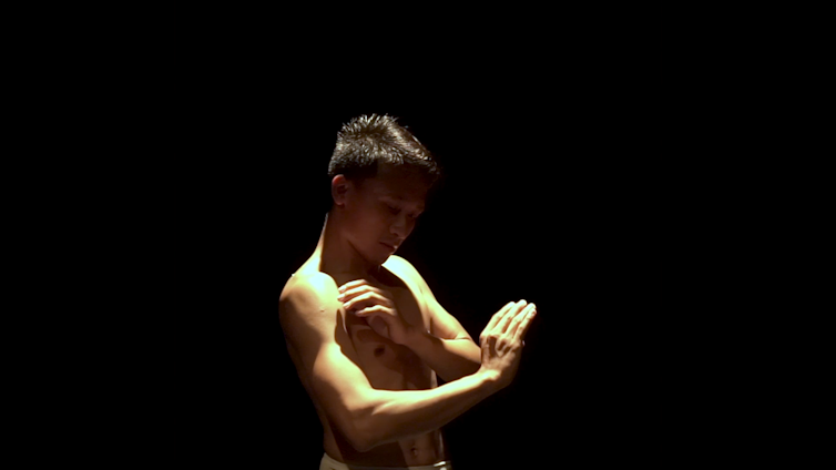 Irwanda Putra (24) is a professional dancer involved in this study. In March 2021, Irwanda performed his solo composition in the 8×3 Festival held by the research team. PC: Documentation of the Youth Studies Centre, Universitas Gadjah Mada (UGM) in Yogyakarta.