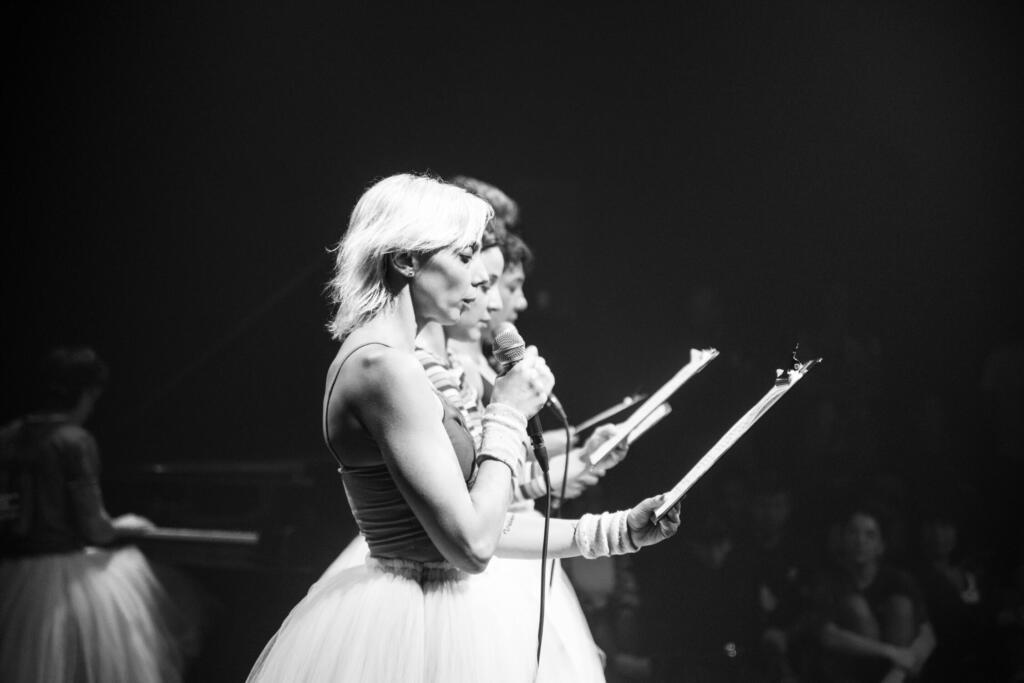 Act 1 invites the audience to imagine Paris in 1842, the year of the birth of dancer Emma Livry. Spectres of the past haunt the stage as Luciana Acuña narrates Livry’s short life: a star who was the illegitimate daughter of ballet dancer Célestine Emarot and Baron Charles Chassiron. The inspiration for Offenbach and choreographer Marie Taglioni’s 1860 ballet Le Papillon, she was admired for her ephemeral elegance as a performer.