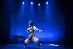 Worth highlighting also was Peruvian actor Ricardo Bromley’s virtuoso performance in Sebastián Rubio’s El rincón de los muertos/The Corner of the Dead, which played at the Teatro Mori Recoleta. Co-directed by the author with Yanira Davila, it’s a highly personal piece working through the history of Ayacucho – the name combining the words for death and eating. Ricardo brushes through its history and conflicts (including enforced disappearance and civil unrest in mapping his own journey to theatre. Ricardo’s influences are eclectic and unusual and include an admiration of Chaplin and his extraordinary scissor dancing where past and present come together in a celebration of the living and dead.