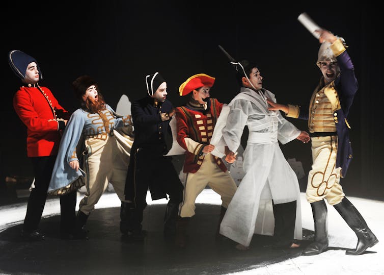 Andrew Kroenert, Noni McCallum, Nick Simpson-Deeks, Elenor Smith-Adams, Leighton Phair and Reece Budin in Pacific Overtures. Watch This/Jodie Hutchinson, Author provided.