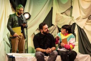 The production’s atmosphere is essential to its meta feel, crafted by a cohesive artistic team. The scenic design by Joelle Gonzalez and the lighting by Lucky’s Lighting Inc. create a world that feels both intimate and expansive—a dreamscape that shifts at any moment. With Bekah Lazar as stage manager, these transitions feel seamless; when the temptation of the shortcut appears, the lighting shifts into a striking, otherworldly glow, visually signaling the moment the software of the system takes over. The sound design by Andy Cohan, paired with Joe Izen’s original music and orchestrated by Kendra MacDevitt, acts as the play’s heartbeat. Under the artistic direction of Gail Thacker, these elements subtly underscore the tension between Chauncey’s ambition and his need for a breakthrough—that moment where the actor finally stops performing and starts witnessing his own life.